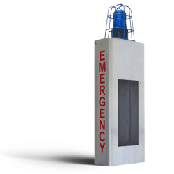 The Aiphone Stainless Steel Wall Mount Box with Emergency Lettering is made of 12 Gauge stainless steel and is weather/vandal resistant. The wall box's narrow 4" depth allows it to meet all ADA mounting requirements. The blue beacon/strobe requires a 24V DC power source, not included. Compatible emergency / assistance sub stations include the IS-SS-RA, IS-SS-2RA, and IS-DVF-2RA.