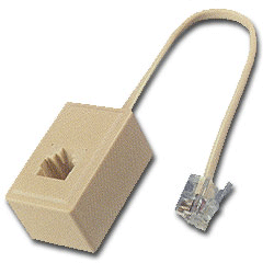 Consists of a modular cord stub 5" in length which terminates into a thermoplastic housing containing a 4-contact, 6-position modular jack. A double wound inductor is wired in series between the cord and a jack. Used for elimination of radio frequency interference especially in the AM broadcast station band.
