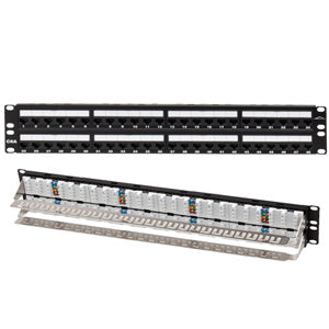 Category 6A 10Gb Patch Panel. Features: UL & CSA Listed RoHS Compliant UL 94V-0 fire retardant plastic Includes heavy duty cable management bar Hinged label holder for easy label changes...