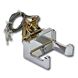 Chrome plated cast metal handset hanger for vertical or horizontal handset mounting. Includes 3 form "C" (transfer) switch combinations for standard 7 wire telephone hookswitch operation (7 spade-tipped 12" leads - optional). Adjustable for panel thickness of .060" to .125".
