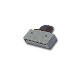 Modular adapter designed to provide a connection between 50-pin amphenol connector 8 conductor line cords. Consists of male 50-pin amphenol connector 6 modular jacks. Each jack is clearly marked to identify its associated line circuit. Equipped with VELCRO brand touch fastener to insure a secure connection.