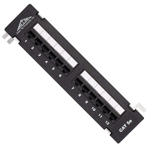 Category 5e 12 port patch panel. AT55B-12PT Features: Designed for small voice and data cross connect applications Equipped with two 6 port category 5e non keyed jack modules Universal wiring...