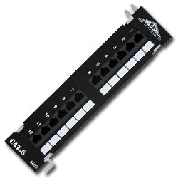 The category 6 patch panels are designed for small voice and data cross connect installs. They are equipped with 2, 6 port category 6 non-keyed jack modules and mounted on a GB89D mounting bracket.