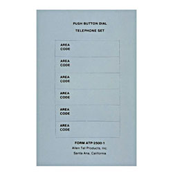 Dial Card. Features: Use with standard pushbutton dial telephone sets 6 strips on a card, arranged for typewriter or numbering machine imprinting Each individual strip measures 1 3/4" x 7/16"....