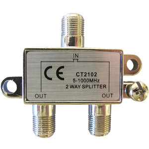 1 GHz 2-Way Splitter filters out signal variations, enabling the combination or splitting of digital cable/antenna signals with satellite signals.