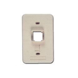 These convenient face plates are designed to mount on NEMA standard single-device boxes. The Allen Tel AT90 Mounting Brackets (except GB105) or similar devices. They are molded of light matte finish grey plastic and furnished with mounting screws. The Type 1 model is used in data cabling systems to terminate data connectors. The Type 2 units, in addition to mounting data connectors, can mount either 3 or 4-pair modular telephone jack assemblies. The GB104 will accommodate one such modular jack; the GB105, 2 modular jacks.