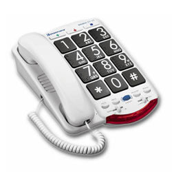 The Ameriphone JV35 Amplified Telephone with Braille characters restores the ease of using the telephone to persons with both low vision and moderate to severe hearing loss.