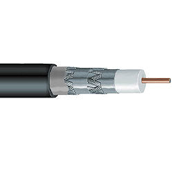 RG-6 quad shield direct burial coaxial cable with 18 AWG solid copper covered steel conductor. Most available in boxes and reels in bulk quantities of a minimum of 9,000'.