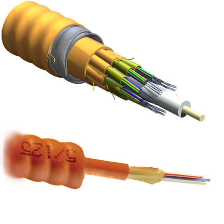 Riser cable with aramid yard strength member, PVC riser and plenum rated thermoplastic. Choose riser and plenum distribution cables for: riser cabling, office cabling, factory floor automation.