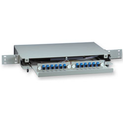 The Remote Cabinet Shelf (RCS) is a 12-fiber patch panel designed for cabinets with limited space. In the stubbed configuration, it is ideal for installation in remote electronics cabinets. The unit's compact height allows it to mount in a single, standard EIA 19-in or 23-in rack. The unit is available for use with field-installable connectors or with preconnectorized cable.