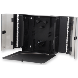 Wall-Mountable Connector Housing (WCH) provides interconnect or cross-connect capabilities between the outside plant, riser or distribution cables and the opto-electronics. The cable strain-relief kit (WCH-STRNRLF-KIT) is designed for easier installation and the standoff bracket (WCH-STDOFF-BKT) extends the WCH from the wall to allow cable routing behind the housing. Brackets can also be stacked to increase the amount of space for routing.