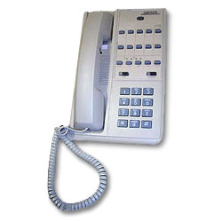 2-Line Patriot Speakerphone with 90V message waiting lamp (also works on 130V switches), data port, 10 number memory, ringer volume control. Specifically designed for hotels, motels or small/home offices with 2 lines.