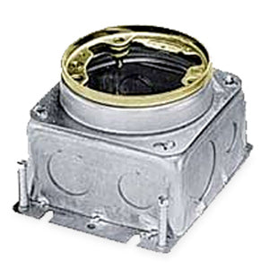 Stamped steel fully adjustable floor box for round covers. Supports 4" minimum depth of pour.