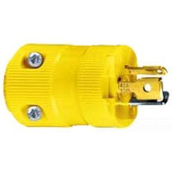 2-Pole, 3-Wire Grounding, 15A 125V, L5-15P, Yellow Nylon Twist-Lock Valise Plug. Plug Features: Twist-lock connector body Wiring Scheme: 2-pole, 3-wire grounding Amperage: 15A Voltage: 125V AC NEMA Configuration: L5-15P Terminal...