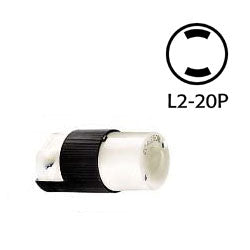 NEMA L2-20P Non-Grounding Twist Lock Connector Body. Features: Wiring Scheme: 2-pole, 2-wire non-grounding Amperage: 20A Voltage: 250V AC NEMA Configuration: L2-20P Device Color: Black/White Terminal Retainer Material: Clear polycarbonate Housing...
