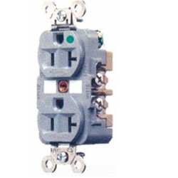 Hospital grade back and side wired 20Amp duplex receptacle.