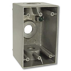Single gang deep weatherproof box 3 1/2" outlets have State-of-the-art powder coat finish and Reinforced connector outlets.