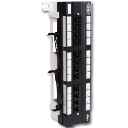 Front access 12 port patch panel offers a unique design that allows access to both modular jacks and IDC connectors from the front.