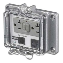 Panel-Safe 20A 125V, GFCI with In-Cabinet Receptacle, Cat 5e Ethernet Access and 3A Circuit Breaker.