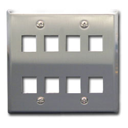 Flush Mount Double Gang Stainless Steel Faceplate is a classic double gang 8 port stainless steel design.