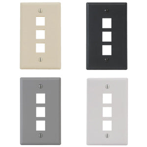 3 Port Single Gang Faceplate. Features: Configured to fit standard single gang outlet box Accepts all IC107 modules Easy snap-in assembly Connector mounts flush Module color matches faceplate UL listed...