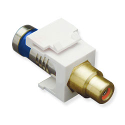 White RCA to RG6Q Crimp Compression Module improves performance and minimizes signal loss by combining the modular jack and the compression connector into a single body.