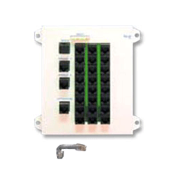 Designed to distribute 4 in-coming telephone lines in combinations of line 1 and 2, line 3 or line 4 with up to 8