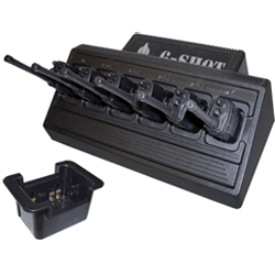 6-Shot, 6-Unit radio charger with pods. Features: Interchangeable battery pods Charge just the battery, or with the radio attached Rapid-rate charging cycle Tri-chemistry: Nicad, NiMH, Lithium Ion Includes the BULL-CORD...