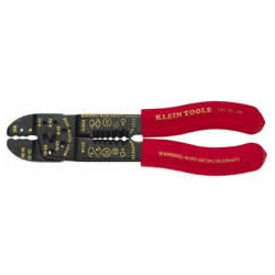 Cleanly shears bolts. Easily cuts and strips wire. Measures stud sizes. Gauges wire sizes. Crimps insulated terminals. Plastic-covered cushioned handles for comfort.