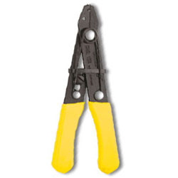 A handy, light, compact tool for stripping insulation. Cuts, strips, and loops 12-26 solid and stranded wire. Features: Convenient hole for looping or bending wire Black-oxide finish with plastic-dipped handles...