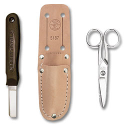 Cuts cable, telephone wire, and strips insulation. Features: Dimensions: 2-1/8" x 7-1/2" (54mm x 191mm) Kit includes: Cable-splicer knife Electrician scissors 2-pocket leather pouch Available in singles and packs of...
