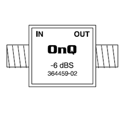 Reduces RF signal strength by 6 dB. Prevents DC transients.