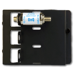 RF coax conditioning module supports mounting of RF coax surge protector, low pass filter, and notch filters.