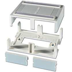 Series II Plastic Surface Mount Box for Four Modules accept front-loading Series II modules and provide snap-on covers and snap-in label fields.