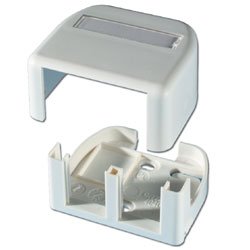 Two Module TracJack Plastic Surface Mount Box accepts front-loading TracJack modules and provide snap-on covers and snap-in label fields.
