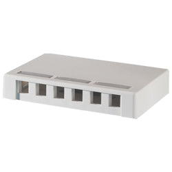 Surface mount box, holds six Keystone jacks or modules. TechChoice surface mount boxes are compatible with Wiremold Eclipse raceway.