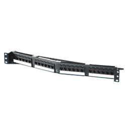 Clarity 6 angled 24-port Category 6 patch panel, high density, six-port modules, 19" x 1.75".