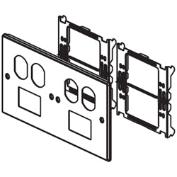 For 15A and 20A duplex receptacles. Includes mini adapter. Accepts 106 Communication Duplex Frame or one Ortronics Series II Communication Insert. Available colors: Gray and Ivory.