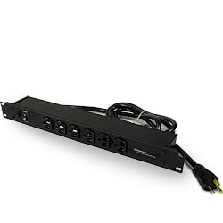 Rack mount plug-in outlet with 6 20A front outlets are ideal for use in a wide variety of settings, including relay racks and cabinets, laboratories, workshops, classrooms and offices.