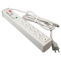 Perma Power computer grade surge protection. Surge Protector Features: Six outlets Lighted switch Durable putty white aluminum housing 15 Amp 15' [4.6m] 14/3 SJT putty white cord with NEMA5-15 plug...