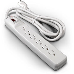 Computer Grade Surge Protector has six outlets, lighted switch and impact-resistant putty white polymeric housing.