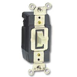 Toggle double-throw center-off momentary contact single-pole 15 and 20Amp AC quiet switch. Features: 120/277V AC Industrial grade Grounding Back and side wired