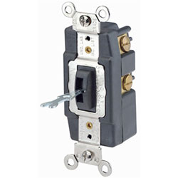 Toggle Locking Double-Throw Momentary Contact AC Quiet Switch is a Single-Pole Industrial Grade product. Quiet Switch Features: Feature: Double-Throw Ctr-OFF Momentary Contact Amperage: 20 Amp Voltage: 120/277 Volt AC HP...