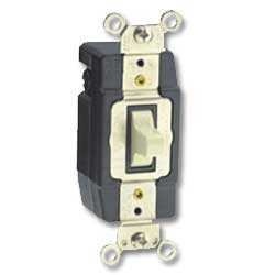 Single-pole, double throw, center off maintained contact 30Amp quiet switch. Features: Available in Ivory only 30Amp 120/277V AC Toggle double-throw ctr-off maintained contact single-pole AC quiet switch Industrial grade Grounding...