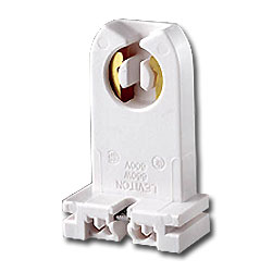 Slide-on standard fluorescent lampholder with captive nut. Available in packages of 5 or 10.