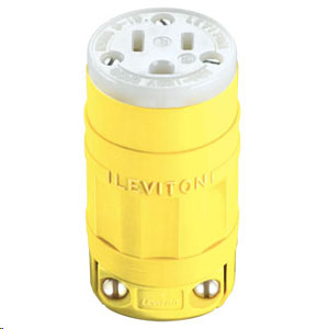 Leviton 1547-P 15 Amp 125 Volt 2P, 3W, Connector Industrial Grade Corrosion Resistant Dustguard YELLOW