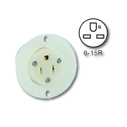 NEMA 6-15P Plug with a nylon body. Features: Rugged construction resists impact, sunlight, chemicals and rough use Industrial grade Back wired Thermoplastic nylon strap Grounding Straight blade