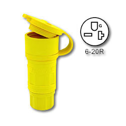 Industrial grade 20Amp, 250V 2P, 3W striaght blade grounding connector with wetguard.