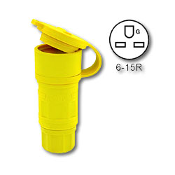 Industrial grade 15Amp, 250V 2P, 3W striaght blade grounding connector with wetguard.