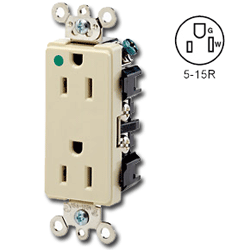 Hospital-Grade back and side wired NEMA 5-15R receptacles are self grounding when installed properly. Features: Locked-in mounting strap with a self-grounding clip riveted to the strap Back and side wiring...